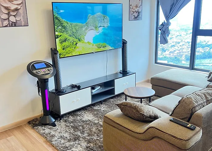 El N3 KARAOKE 65inc BIG TV&SOFA Arte Cheras Duplex 9 person person Kuala Lumpur, situado a poco más de 15 minutos en coche de Club de golf Royal Selangor, se encuentra a a una distancia de 6 km de un importante lugar para familias como el Complejo comercial Berjaya Times Square. Los huéspedes pueden darse un chapuzón en la piscina privada y relajarse tras un largo día.
